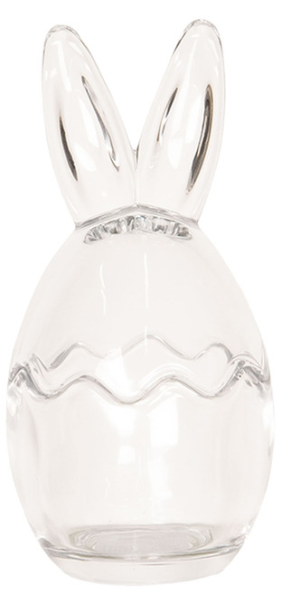 Glasburk med lock i form av kaninöron som passar perfekt till påskens dekorationer. Det klara glaset gör att innehållet syns fint, vilket gör den perfekt för små chokladägg, godis eller andra små favoriter. En enkel och charmig detalj som passar fint på bordet, i fönstret eller som en del av en påskdukning.